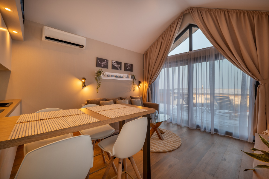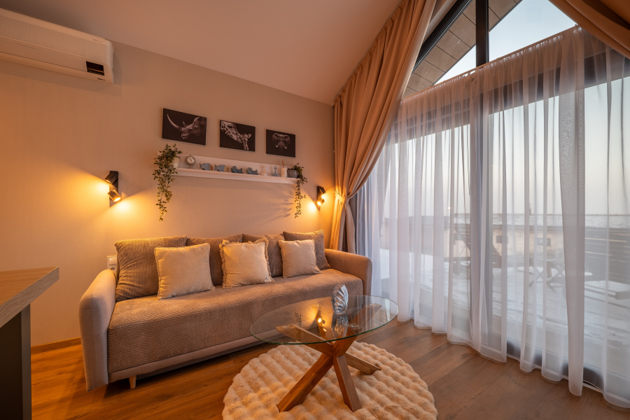 Marina Cabin House brings the atmosphere of a traditional cottage to its 64m² space – evoking memories of summers by the water or snowy winters in nature – complemented by modern comfort, high-quality amenities, and resort services that make your vacation truly carefree. The “cabins,” as we call them, are bright, spacious, and ready for moments you want to savor with your loved ones.